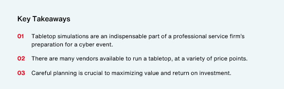 Tabletop simulations can make an enormous difference to the firm’s cyber-resilience. They can materially mitigate the impact and ultimate cost of a cyber-attack.